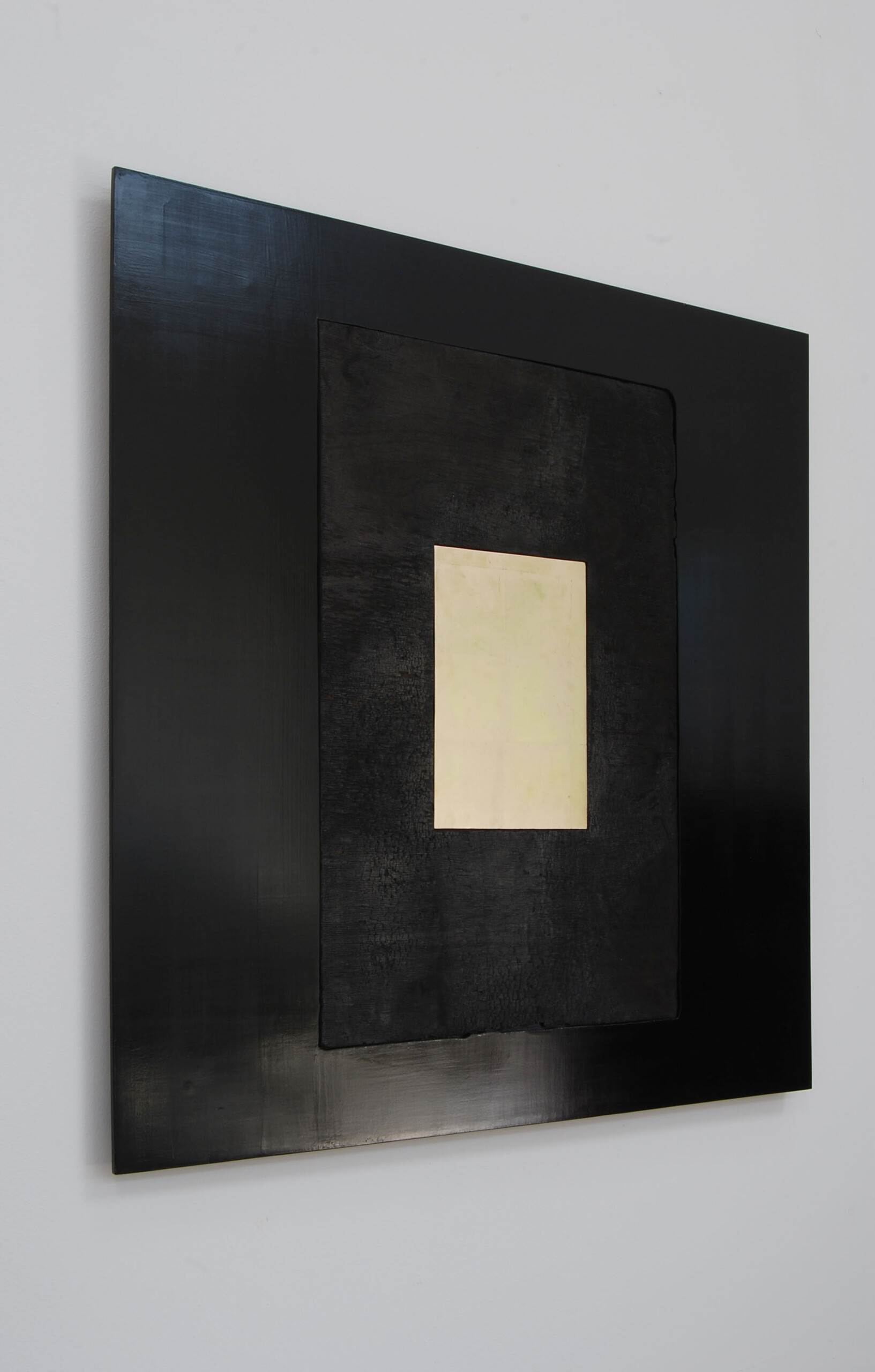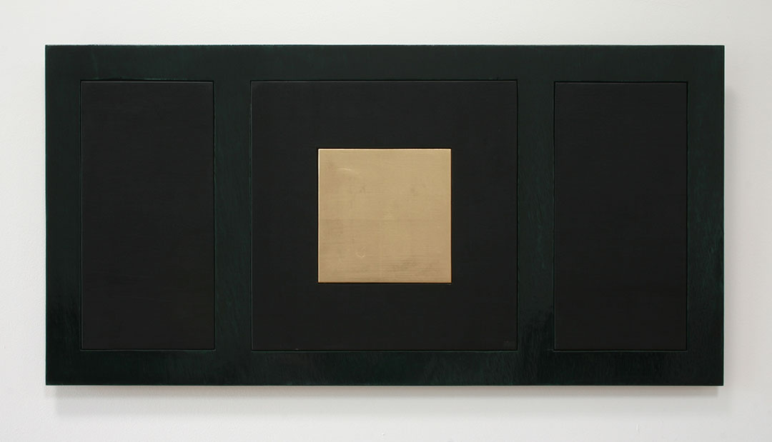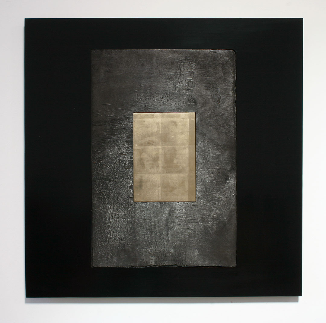 "Trinity" 2010 21ct gold leaf, gesso, black lacquer, burnt plywood panels, inlaid 80 x 80cms