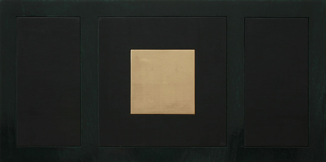 "Trinity" 201021ct gold leaf, gesso, black lacquer, burnt plywood panels, inlaid