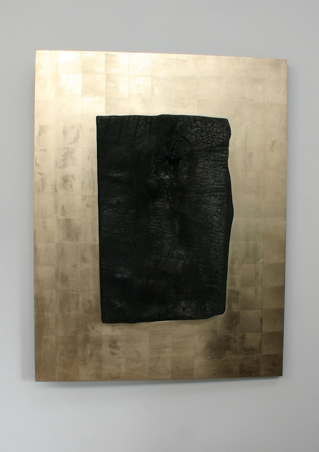 "Trinity" 2010 21ct gold leaf, gesso, black lacquer, burnt plywood panels, inlaid