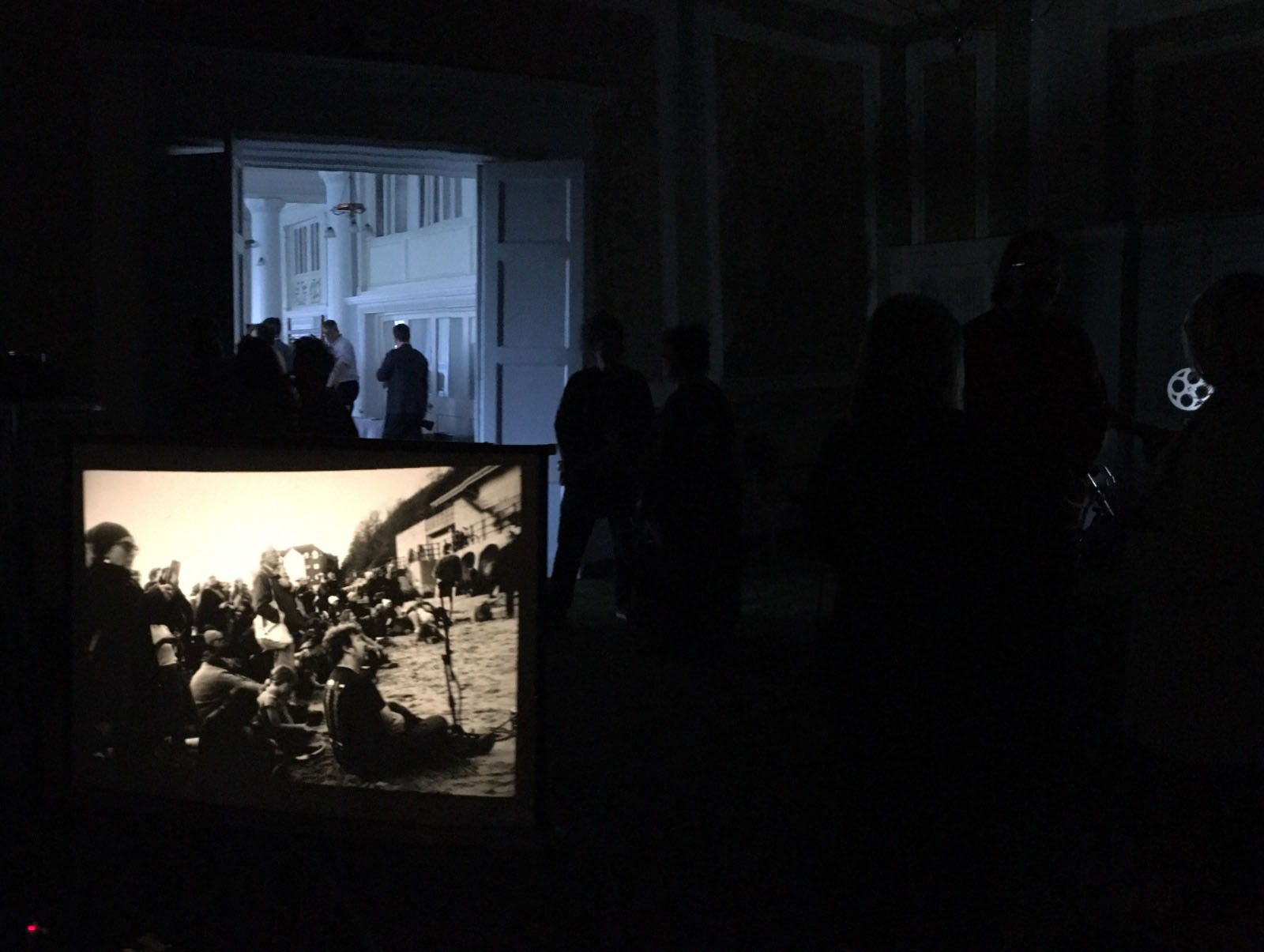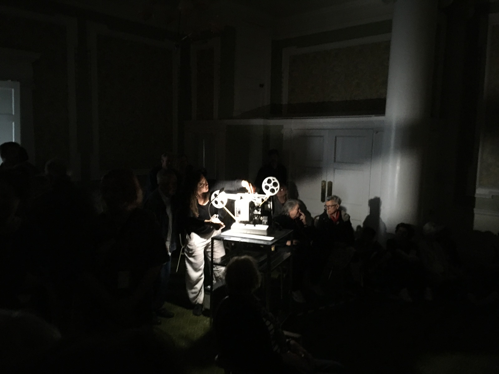 The 16mm film Tempo Adagio on a 10 minute loop, projected onto the stage in the Ballroom at The Grand, Folkestone.