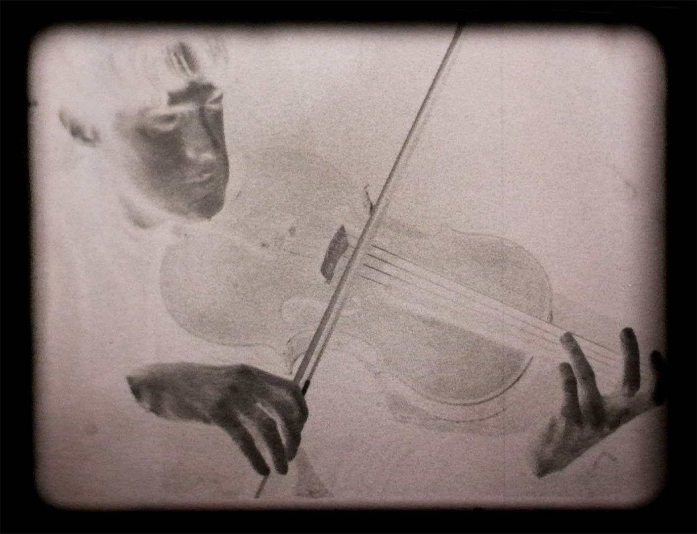 Medium format slide projection by Matt RowePhone film of young girl dancing in front of Quartet by Matt Rowe, with the sound of Tempo Adagio playing in the background